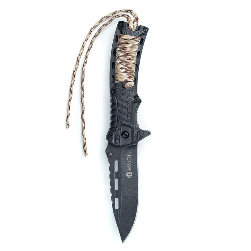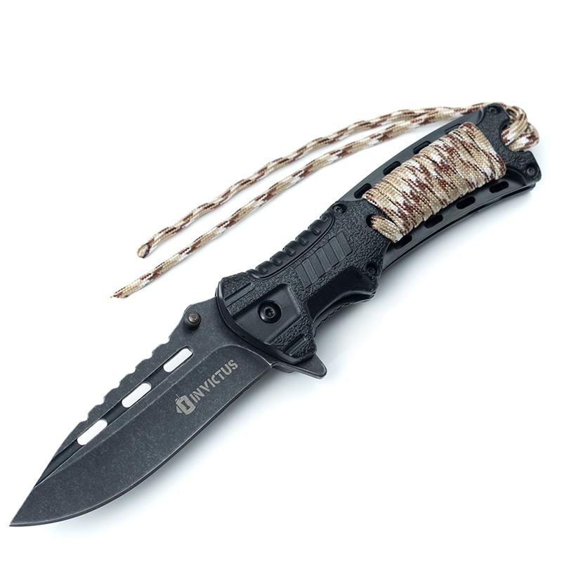 Item desenvolvido com foco na prática outdoor e sobrevivencialista, o Canivete INVICTUS Range se destaca por incluir em seu cabo pederneira e fiel em Paracord.