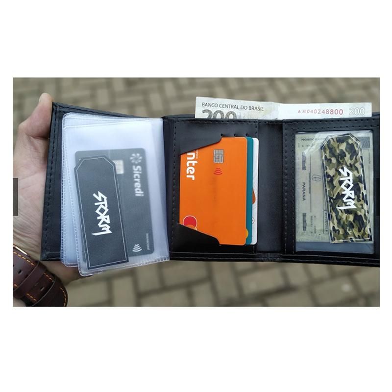 Porta documentos transparente com capacidade até 4 documentos, cartões de crédito ou cartões de visita.