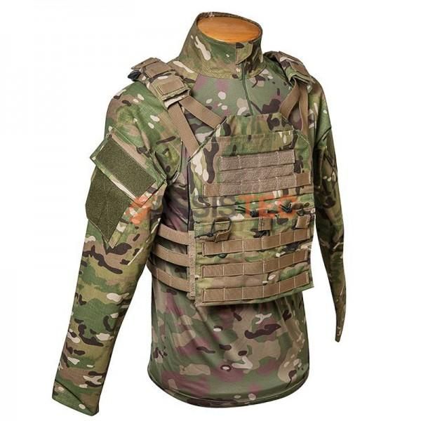 É uma plataforma modular com sistema MOLLE de padrão internacional. Este sistema permite que o operador “monte” seu colete de acordo com seu gosto e necessidade. Assim, basta comprar os bolsos que você quiser e ir acoplando no colete na posição que você desejar.