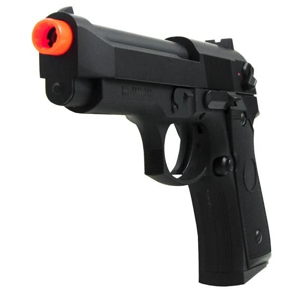 Pistola de airsoft elétrica Cyma modelo CM126, réplica pistola Beretta 92, é constituída com slide metal dando maior realismo a réplica. Contém Hop Up Ajustável, motor elétrico de média potência e medio torque, gerando 200 fps nos disparos com munição 0.20g. Possui 2 modos de disparo, sendo: tiro a tiro e automático. Acompanha Speed Loader e conjunto de bateria e carregador bivolt. Recomenda-se o uso de bb’s de 12g ou 0.20g