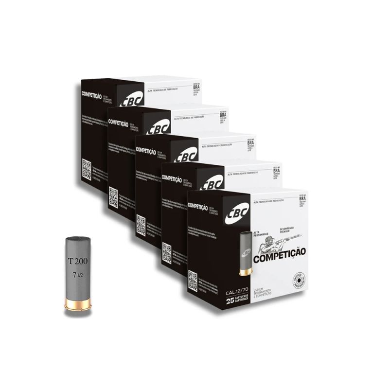 Munição CBC Calibre 12 T200 32g. Alta performance para tiro ao prato e caça. Chumbo 32g para máxima precisão e impact…