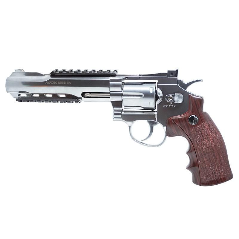 Revólver de Pressão Co2 Rossi, tem um grande realismo e um belo design, fabricado em full metal e com empunhadura em polímero, tambor para 6 tiros!