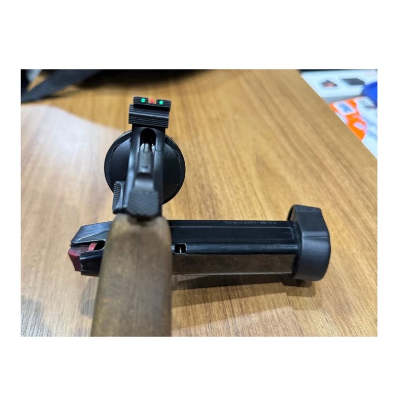A alça de mira regulável e a mira frontal intercambiável se unem a uma empunhadura de borracha envolvente, que amortece a mão durante o disparo, completando esta plataforma.