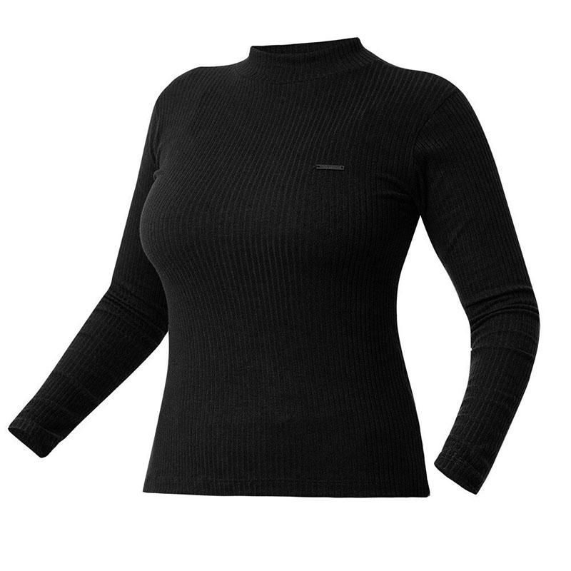 Confeccionada em tecido Ribana, muito macio e composto de 62% Poliéster, 34% Viscose e 4% Elastano, ela possui gola alta e plaquinha de metal na altura do peito, no lado esquerdo. Ainda, sua modelagem é Slim Fit, que enaltece a figura da operadora através de um recorte mais anatômico.