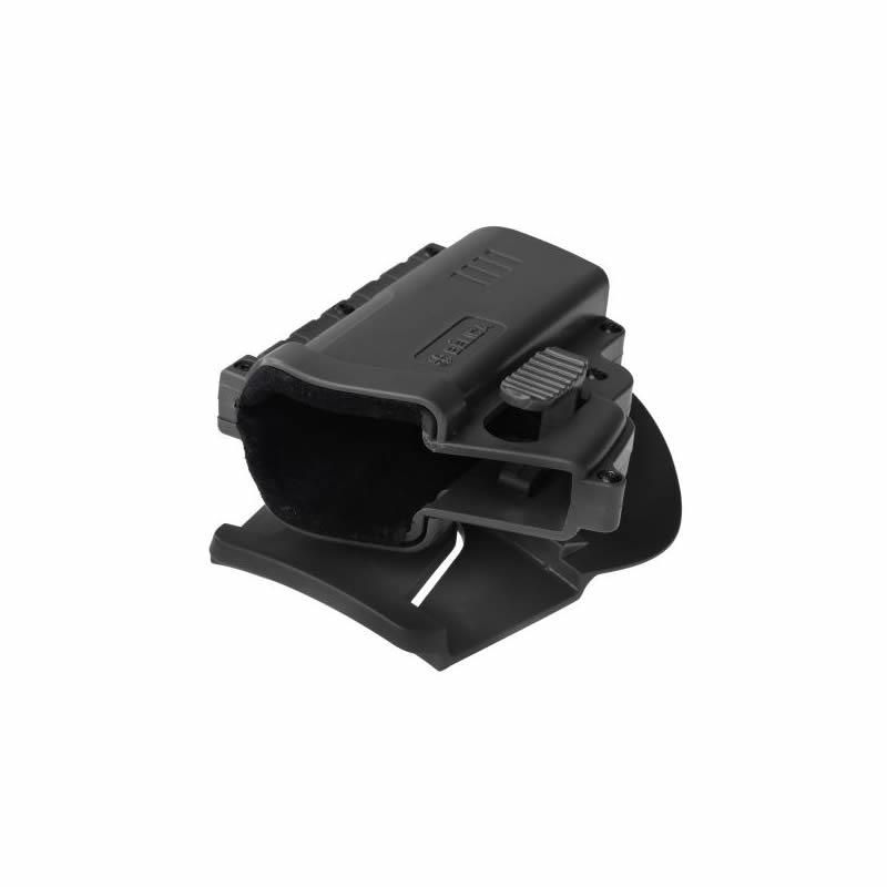 Possui catraca rotativa que possibilita a rotação do Coldre, facilitando o manuseio do equipamento;