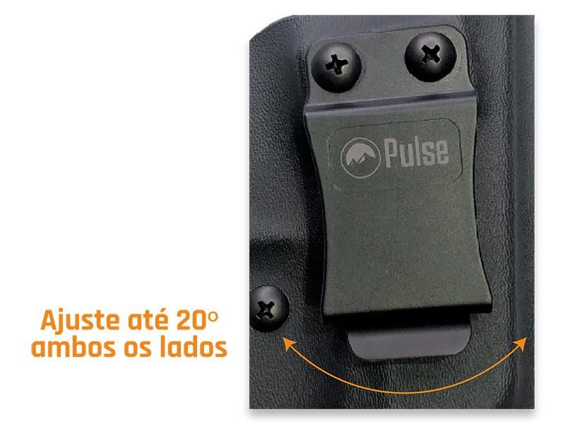 Clipe de polímero para cintos até 3,81cm de largura, com ajuste até 20º;