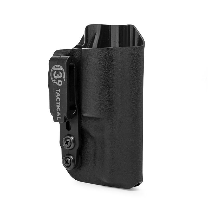 O Kydex® não deforma, sendo extremamente durável e leve. Com duas opções de clip, um em polímero (POM), muito resistente, e outro clip metálico em aço inoxidável, com ajuste de ângulo. Ambos os clips possuem regulagem de altura.