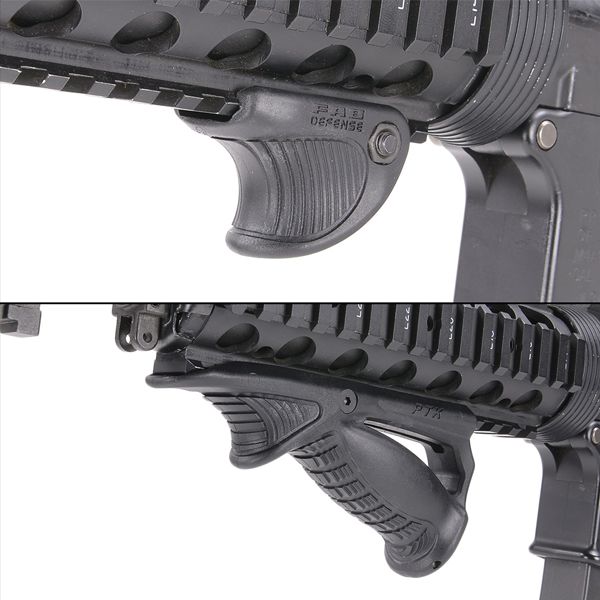 O corpo Grip é feito de uma peça monolítica de compósito de polímero durável para máxima resistência. Muito mais ergonômico e confortável do que outros foregrips angulados no mercado, adquira alvos mais rapidamente e atire com mais controle e menos fadiga. Pode ser usado em conjunto com o suporte tático versátil do VTS como um polegar para um controle ainda maior e uma segmentação mais rápida. O compartimento de armazenamento exclusivo incorporado na aderência permite que você leve pilhas sobressalentes, kit de limpeza ou outros acessórios. Adapta-se a todos os trilhos padrão de 1913 Picatinny. É ótimo para CQB, pois adiciona controle e manobrabilidade à sua arma. Vem em uma cor tática negra.