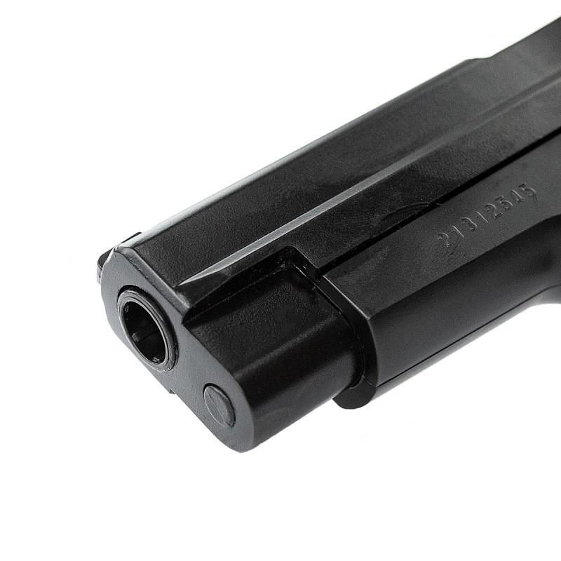 Esta incrível pistola Spring Possui seu slide em metal e seu corpo em material ABS pesando 455g. Seu sistema (Spring) consegue atingir até 190 FPS* – 58m/s, seu magazine tem capacidade para até 70 esferas de aço no calibre 4,5mm.