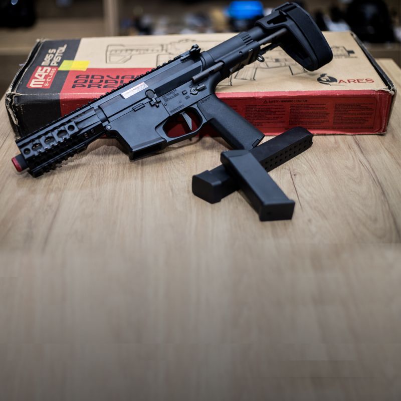 A M45 AEG é uma arma de airsoft da marca ARES. Ela segue as últimas tendências de armas, seguindo a popularização de calibres menores mantendo ainda operam com armas de fogo com padrão AR. A ARES M45 não apenas oferece uma AEG compácta, mas também se oferece como uma plataforma extremamente versátil para atualizações. Diferentes acessórios podem ser plugados e usados em questão de segundos para a capacidade de trocar o tubo de buffer e o estoque, a arma é altamente modular e leva essa filosofia ao máximo. O M45 também utiliza motores ARES testados e verdadeiros e as suas E.F.C.S. para o desempenho ideal do acionador.