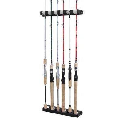 Suporte em material plástico para armazenar verticalmente até 6 varas de pesca.r Também é muito utilizado por lojis…